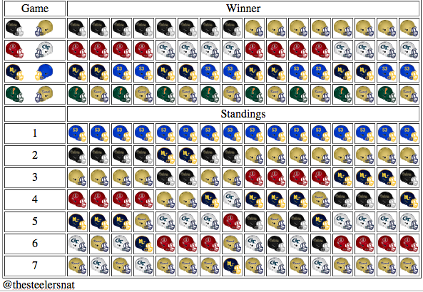 The Interstate Conference title is on the line as Washington and McGuffey square off. Washington has dominated the competition this year, pulling out late victories against Waynesburg and Mt Pleasant and cruising through the rest of their schedule - including a non-conference win over New Brighton. The Prexies are led by RB Malik Wells (974 yards, 14 TDs) and dual-threat QB Jonathan Spina who has thrown for 932 yards and 15 TDs and added 6 more on the ground. WR DeQuay Isbell is a big-play threat, averaging 32 yards a reception and has found the end zone 14 times. On the other side, McGuffey has been a bit difficult to figure out. They started the season slow against Mt Pleasant and were on the verge of being mercy ruled before storming back in the 4th quarter and only losing the game by 6. They have not lost since then, and put together impressive wins against Southmoreland and Waynesburg. The Highlanders have scored at least 34 points in every game and have not allowed more than 14 since the Mt Pleasant game in the opener. Washington will be their best opponent since Mt Pleasant. McGuffey is led by dual-threat QB Nate Whipkey (1041 passing yards, 9 TDs; 489 rushing yards, 10 TDs) and RB James Duchi (1170 yards, 22 TDs). There is the potential for this game to be a shootout as these are the 3rd and 4th highest scoring offenses in AA. The winner of this game will win the conference title, though a McGuffey win could force a 3-way tie with Mt Pleasant (details on tiebreakers below).